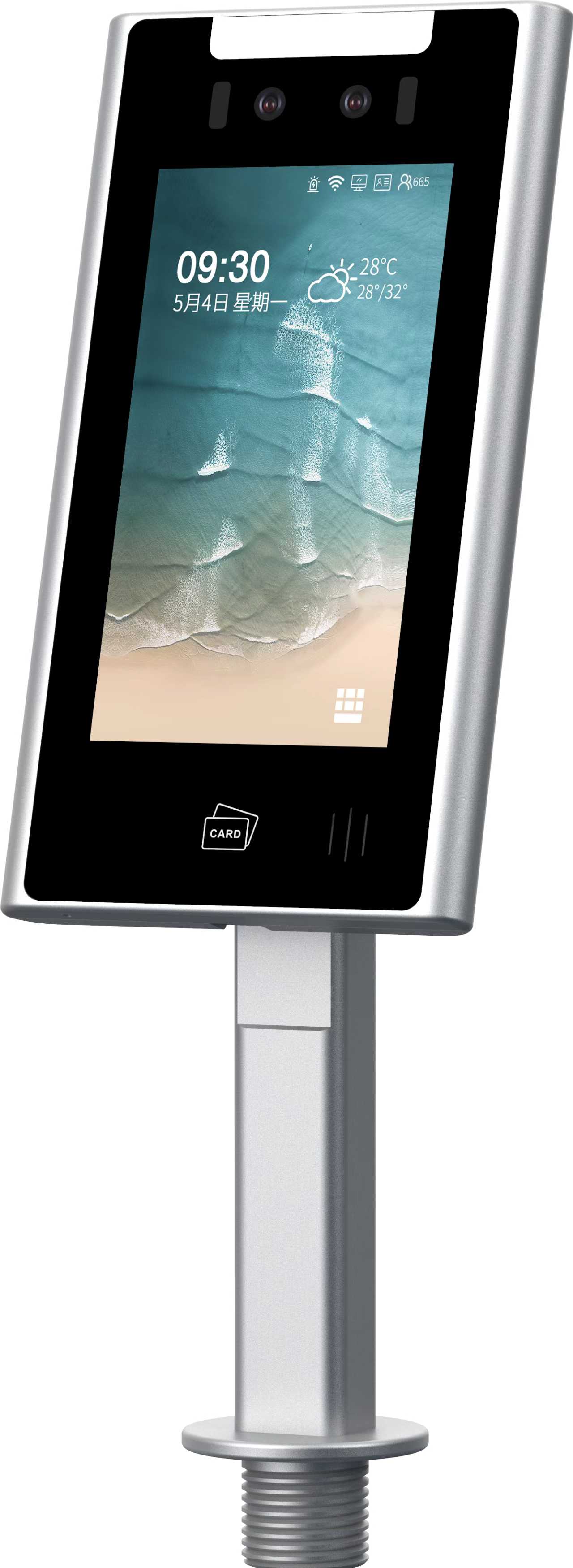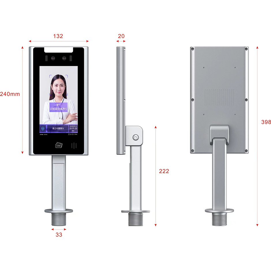 8、機(jī)身尺寸:240*132*20mm(長(zhǎng)*寬*厚) ; 9.人臉設(shè)備終端都帶超寬動(dòng)態(tài)鏡頭